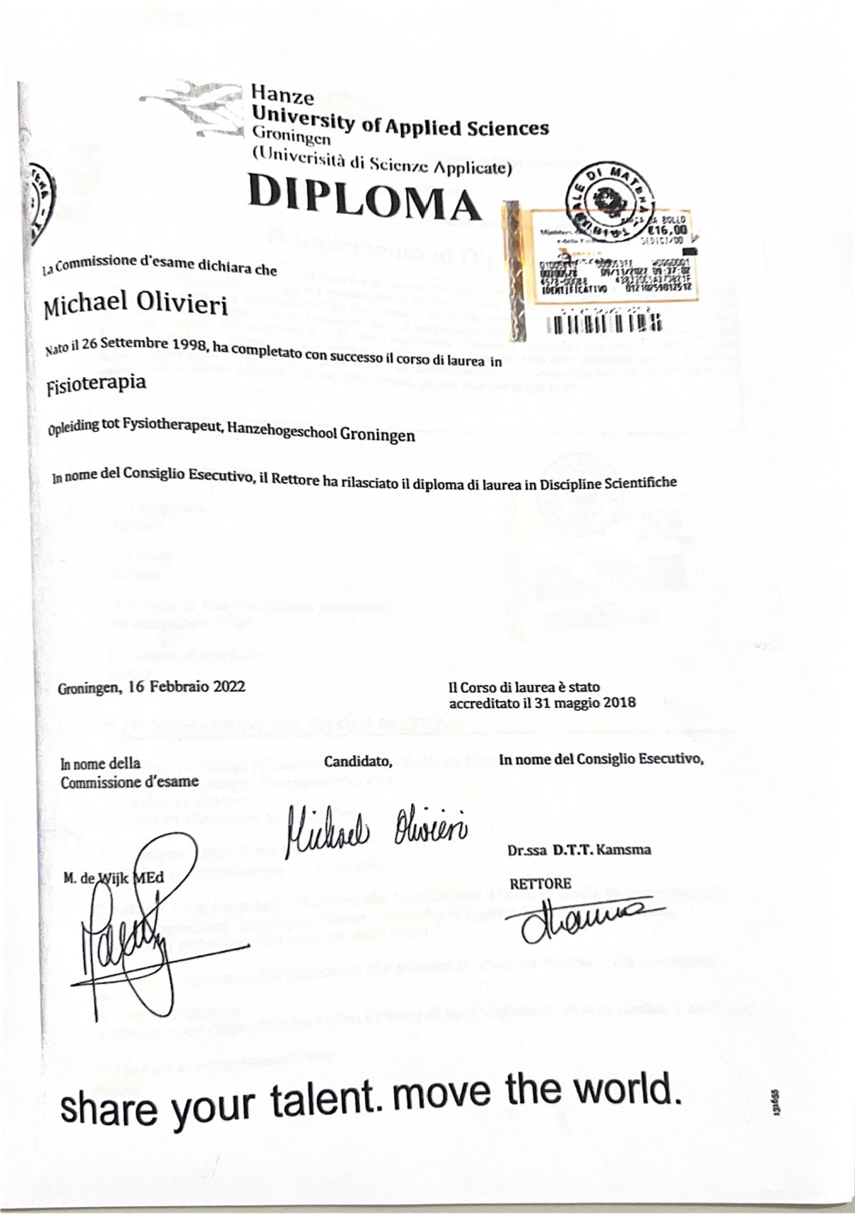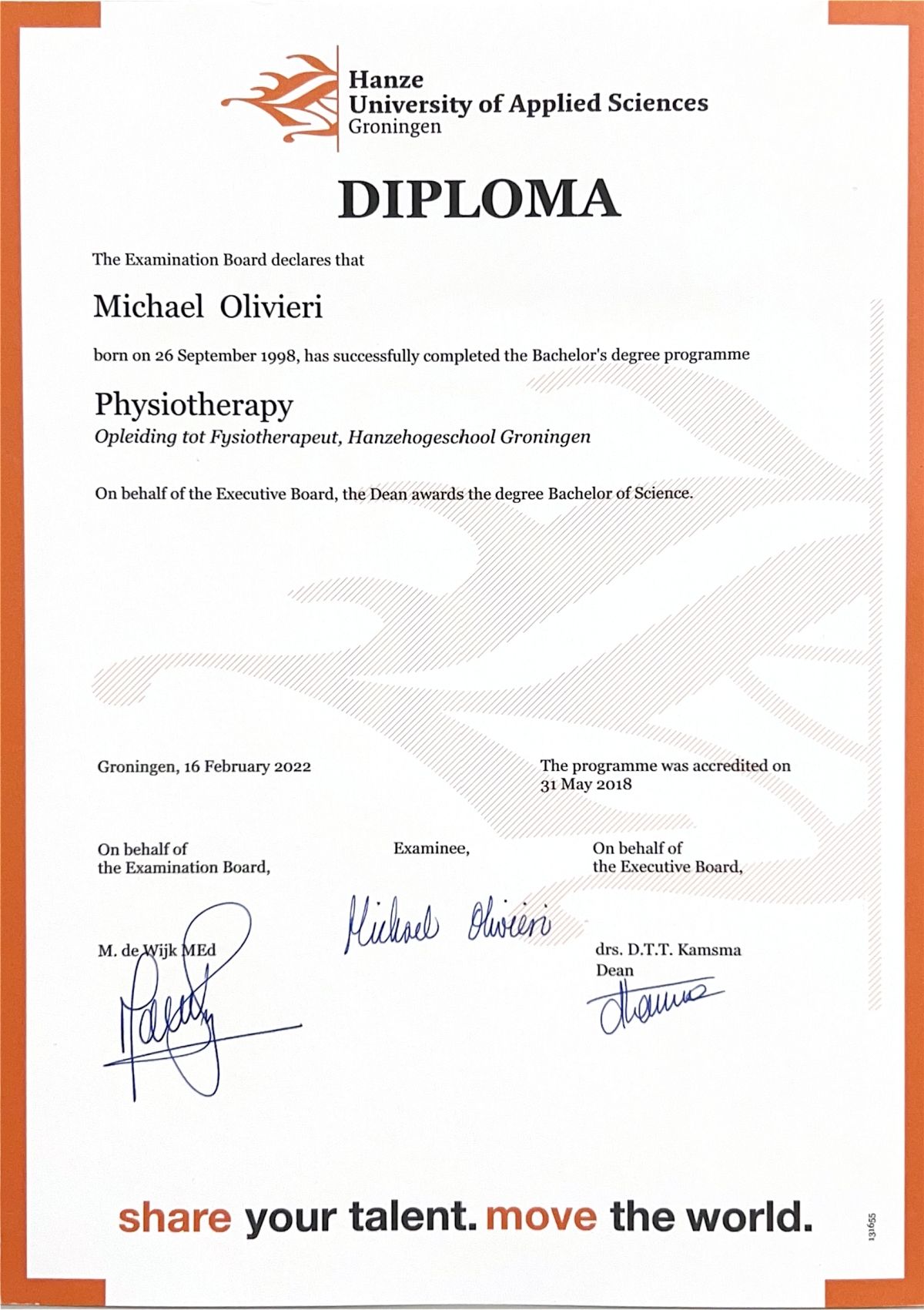 Sono un fisioterapista con una formazione internazionale e un approccio attivo alla riabilitazione. Ho studiato Fisioterapia a Groningen, nei Paesi Bassi, un ambiente che mi ha permesso di sviluppare una visione moderna e basata sull’evidenza scientifica.